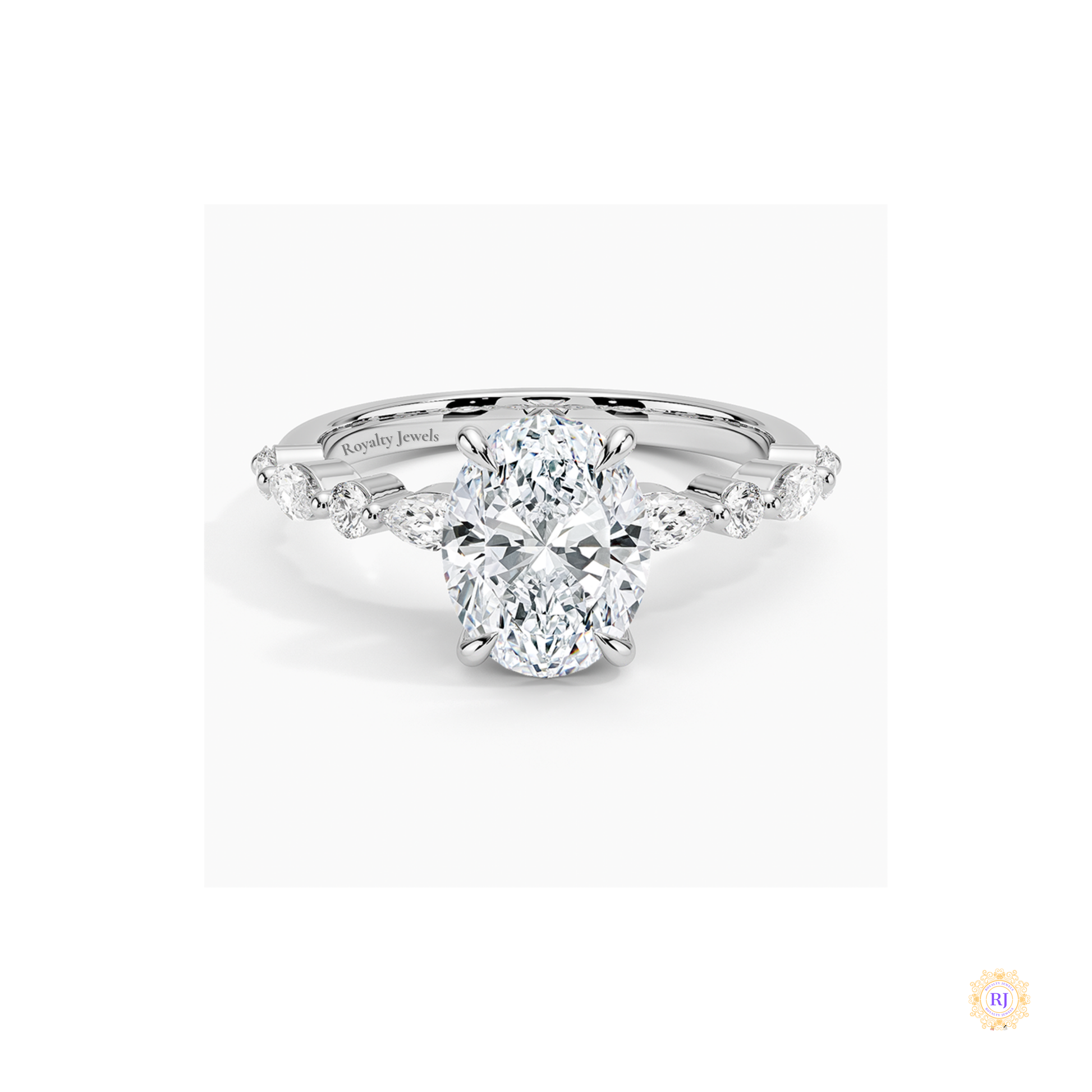 Celebrate forever with this handcrafted 14K Gold Diamond Engagement Ring, featuring a stunning oval-cut center stone framed by marquise and round brilliant lab-grown diamonds. An heirloom-quality symbol of love, ideal for timeless elegance and modern sophistication.